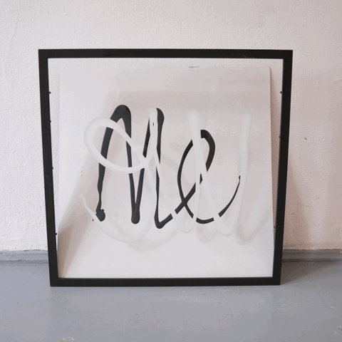 50 x 50 cm, Acrylfarbe, Holzrahmen, Hartfaserplatte, Glas
